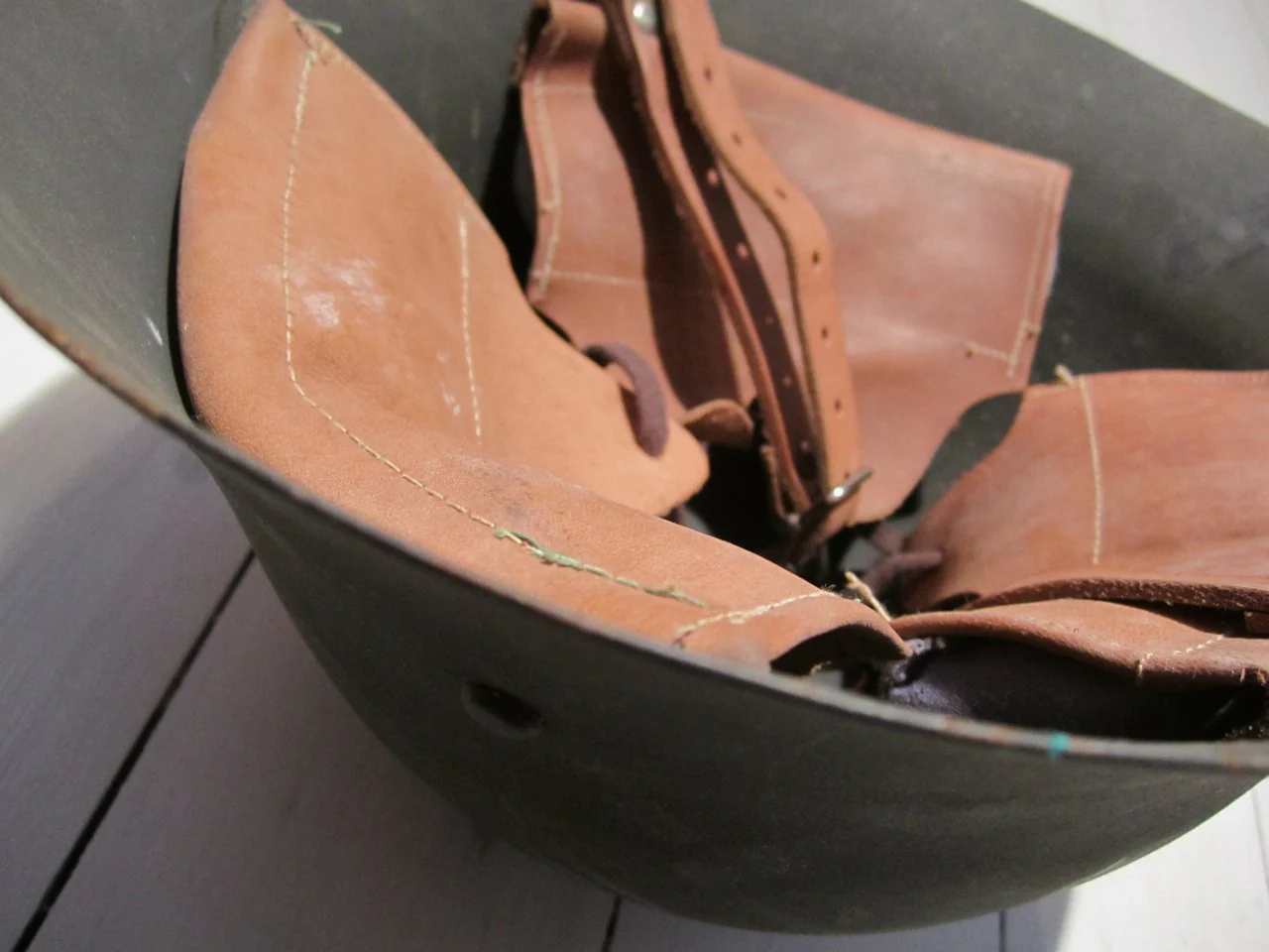 Invändigt läderkuddar med snöre för storleksreglering.